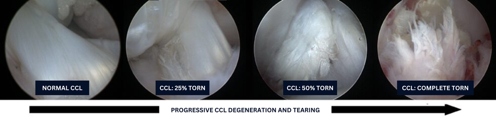 Arthroscopy provides a more thorough and less invasive way of evaluating the interior of the knee than does cutting the knee open to inspect it. One of the important points to take away is that the diagnosis of CCL disease or rupture is not confirmed until visualization of the CCL is performed.